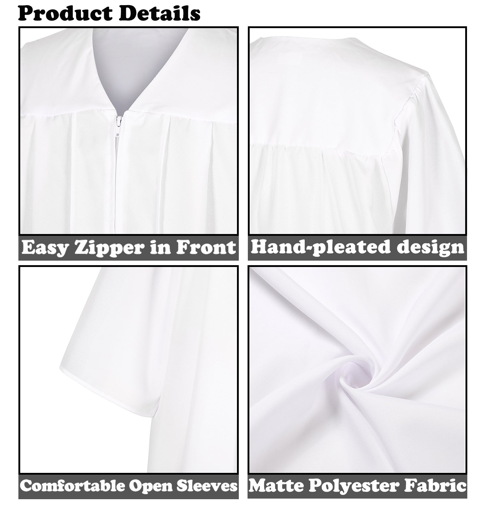 - Premium Matte Fabric – Crafted from high-quality, wrinkle-resistant matte fabric that drapes elegantly and maintains a polished look for every graduation ceremony.