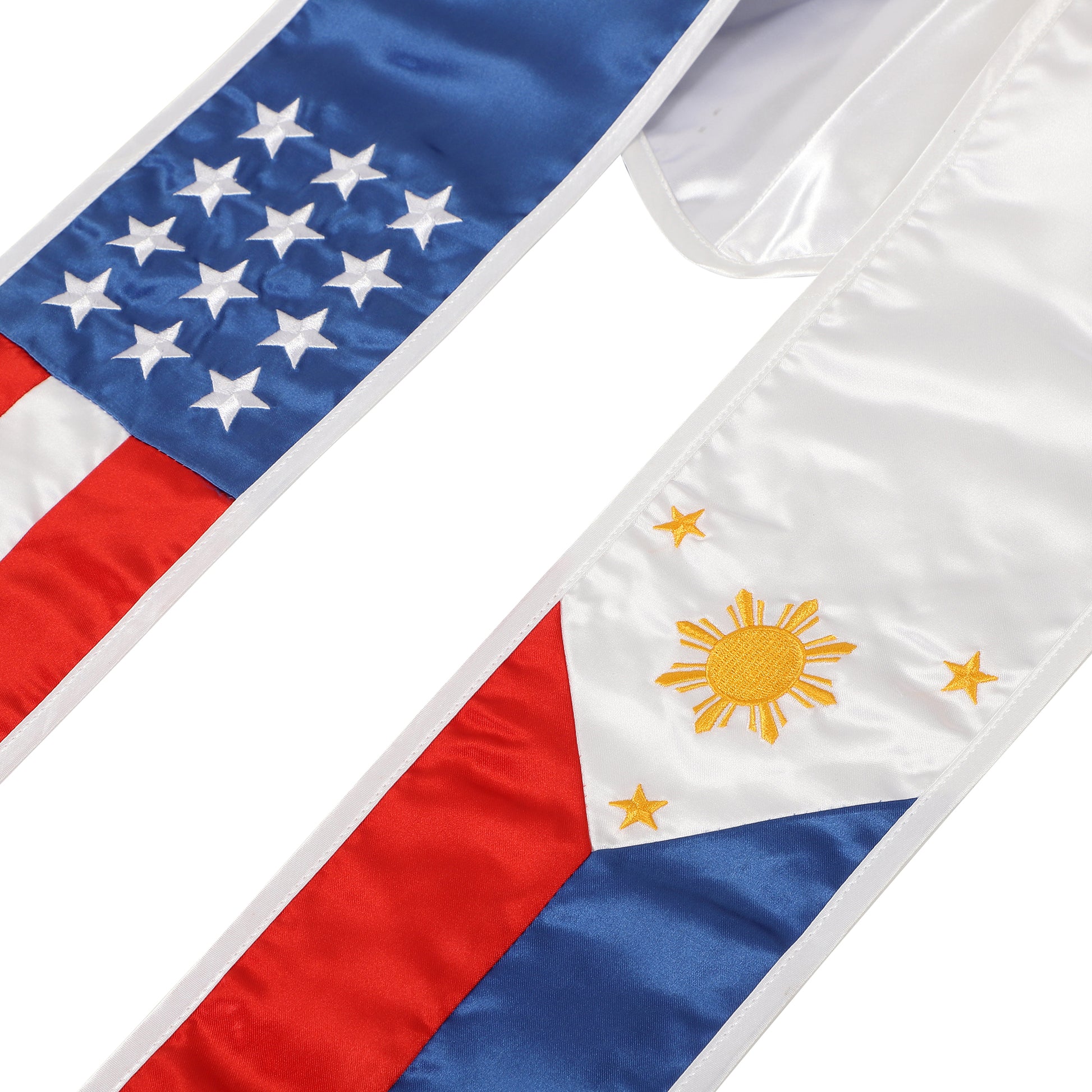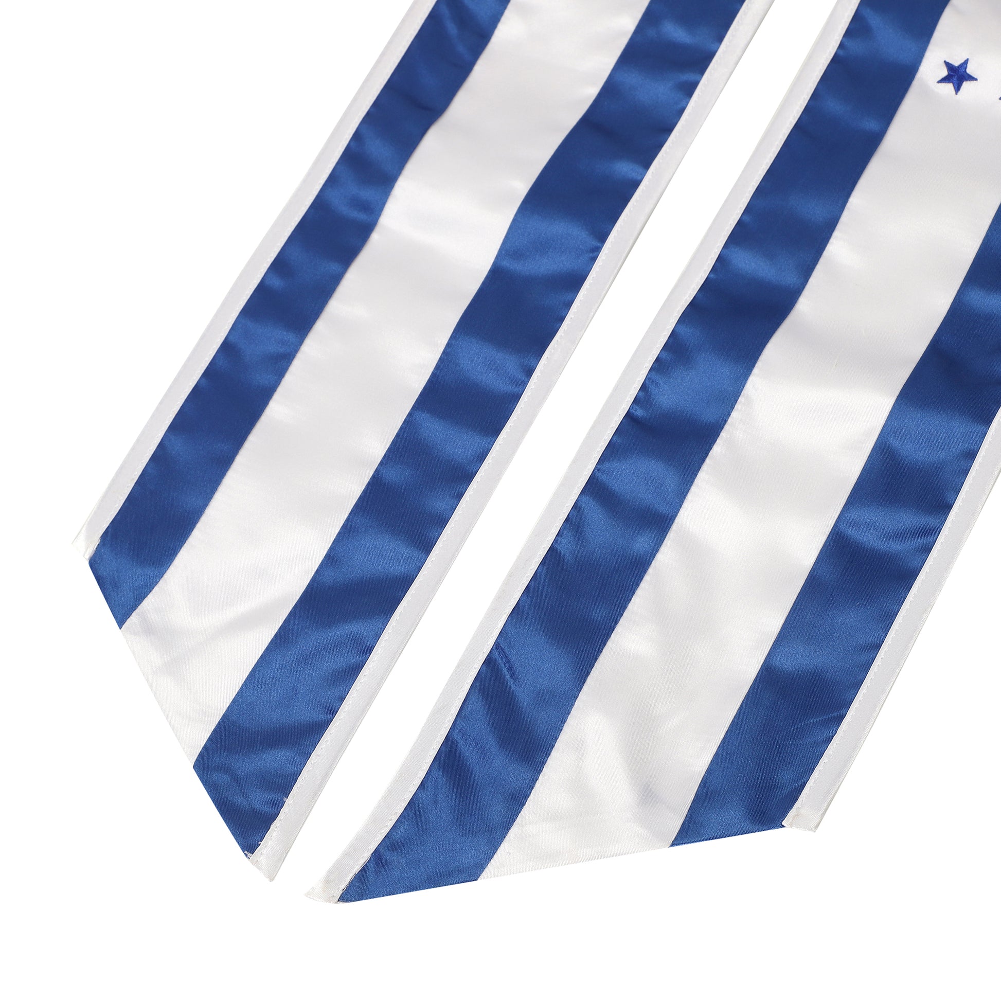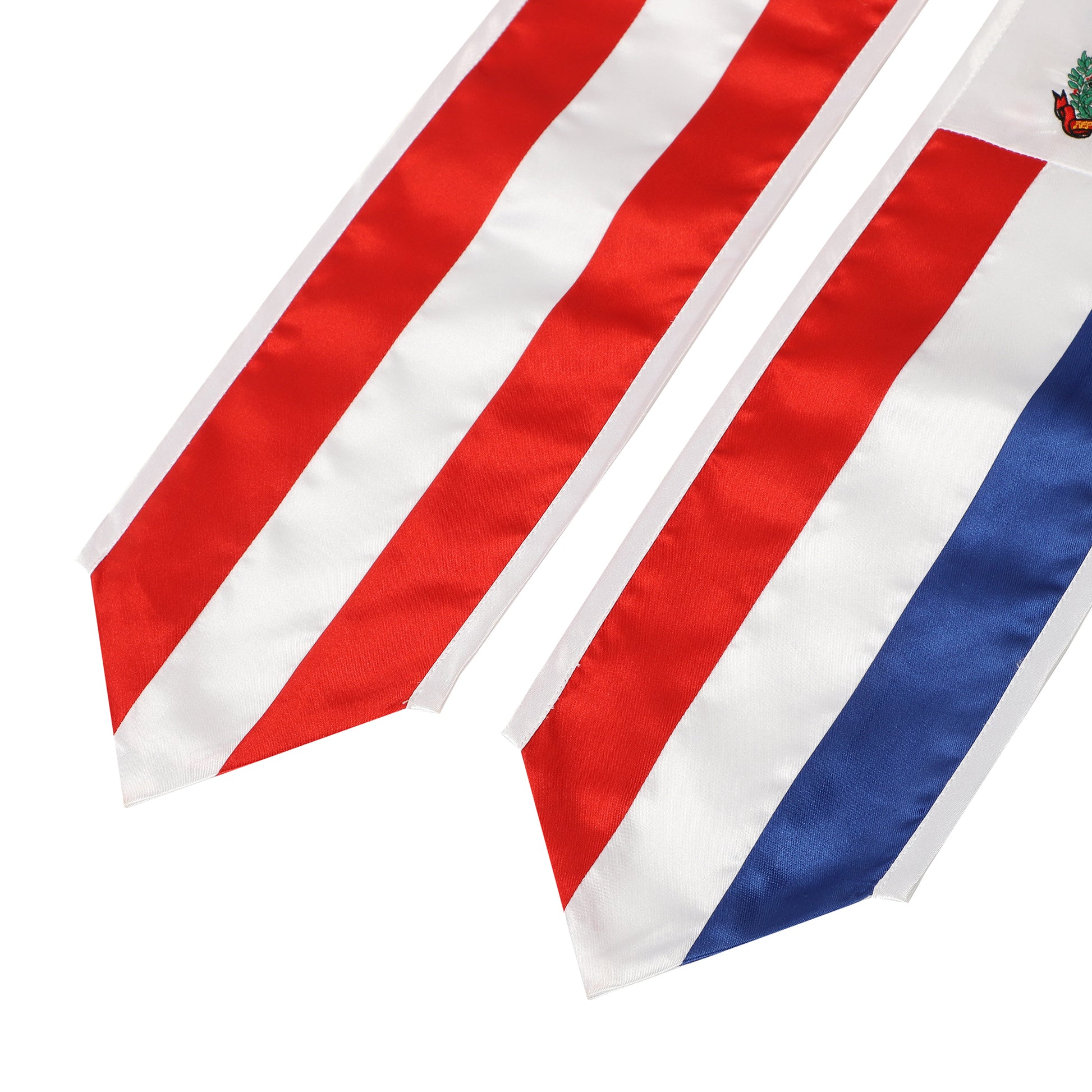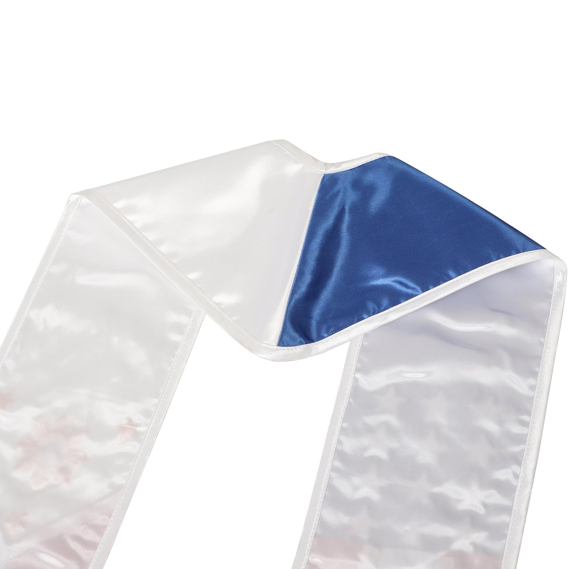 - Durable & Elegant: Each national flag graduation stole crafted from premium silky shiny satin double layers, soft, smooth, and wrinkle-resistant, for durability and long-lasting use. The fabric is easy custom embroidered or printed emblem for a luxurious look and feel. Ensuring breathable wear and flawless look for international students who have studied abroad throughout the ceremony